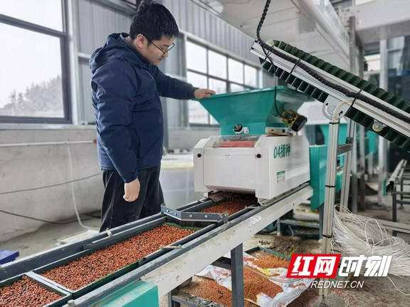 高速育秧流水线正紧锣密鼓运行。
